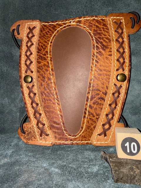 Our armguards are made with top quality 5-6 oz. leather. Easily adjustable bunji-type wrap around closure. Easy on and off. No waiting for a custom piece to be made, these...