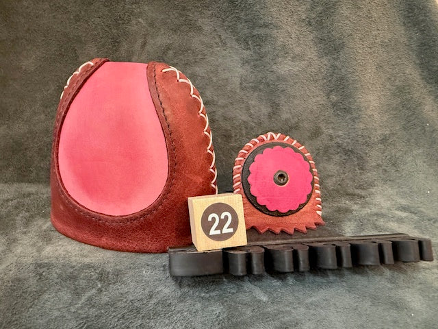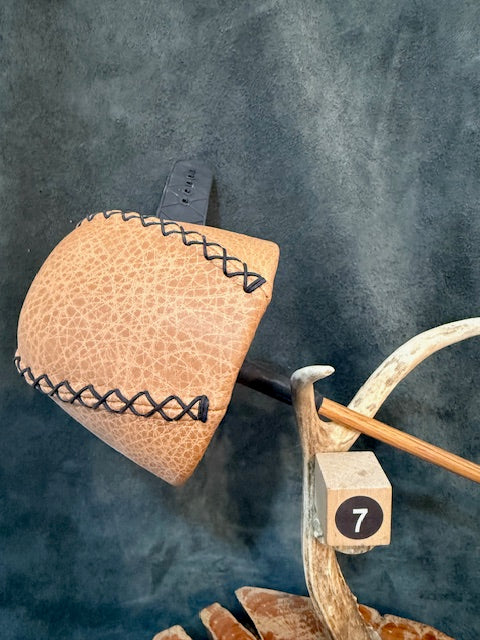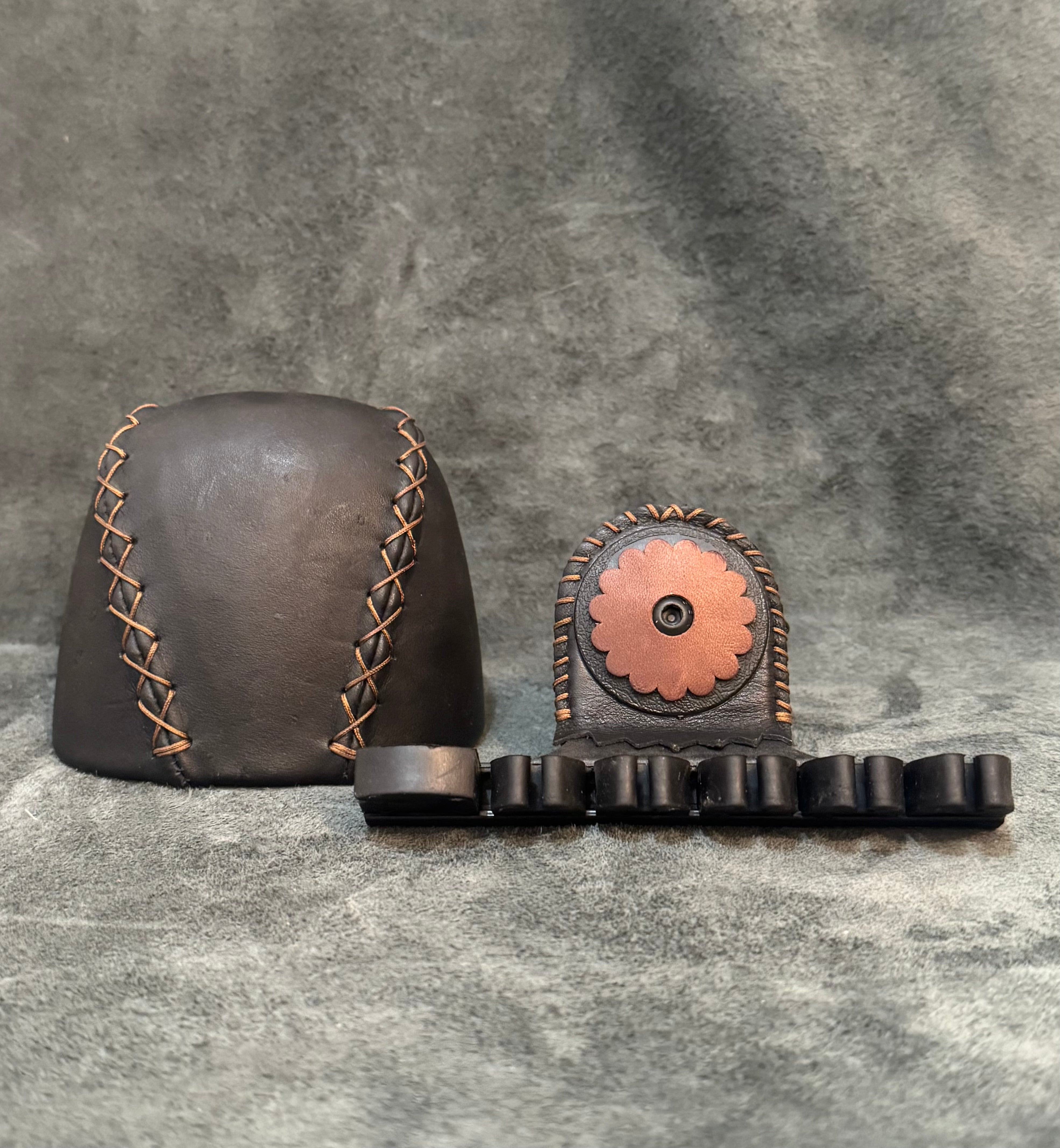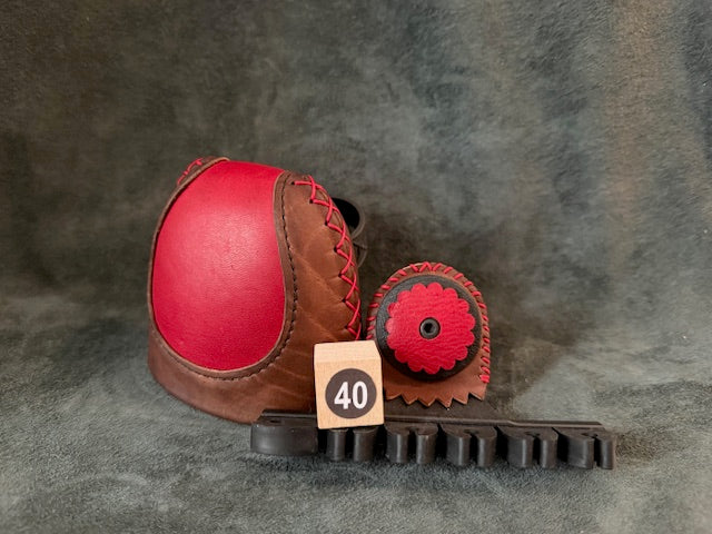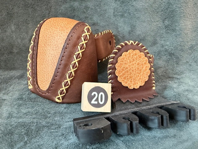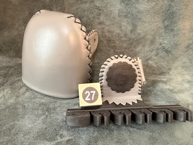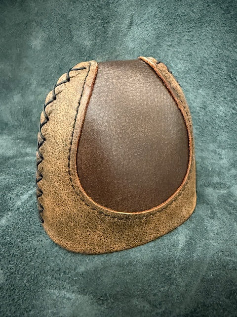 Our ARMGUARD is made of high quality saddle leather, with contrasting tab pieces which act as edge reinforcements for the stretch loops and fastener. We use the "two stretch loop"...