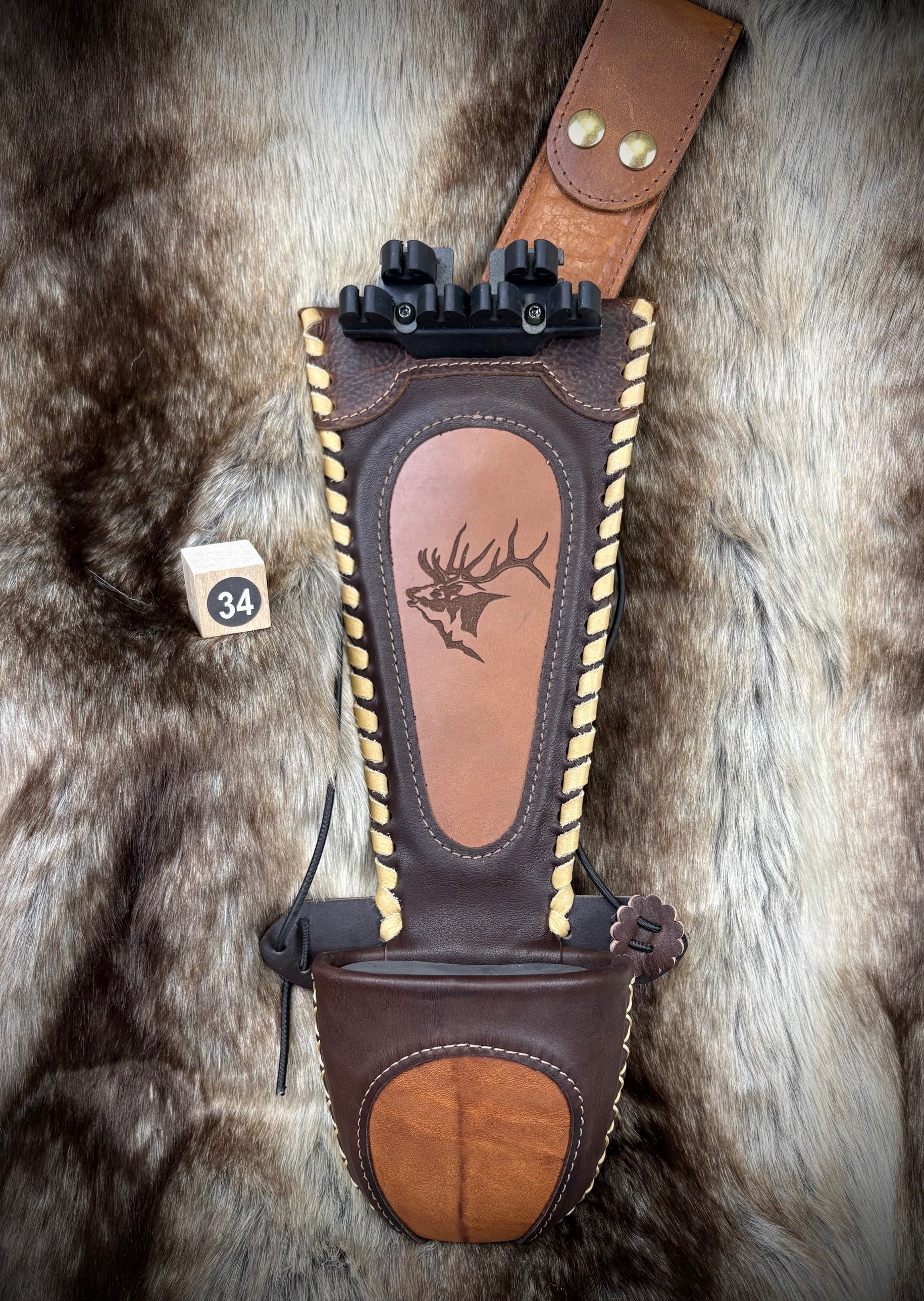 The "BOA" quiver with 'quick-mount' constrictor straps will fit both recurves AND longbows.Available colors: black, medium brown, dark brown, tan, or tell us your bow woods and we'll match up...